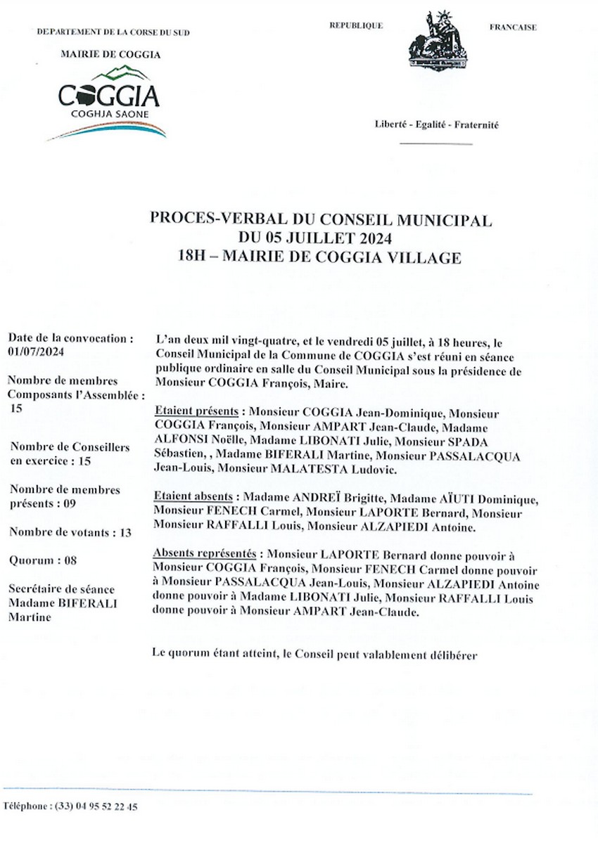 Vous êtes ici : Accueil > PROCÈS-VERBAL DU CONSEIL MUNICIPAL DU 05 JUILLET 2024.