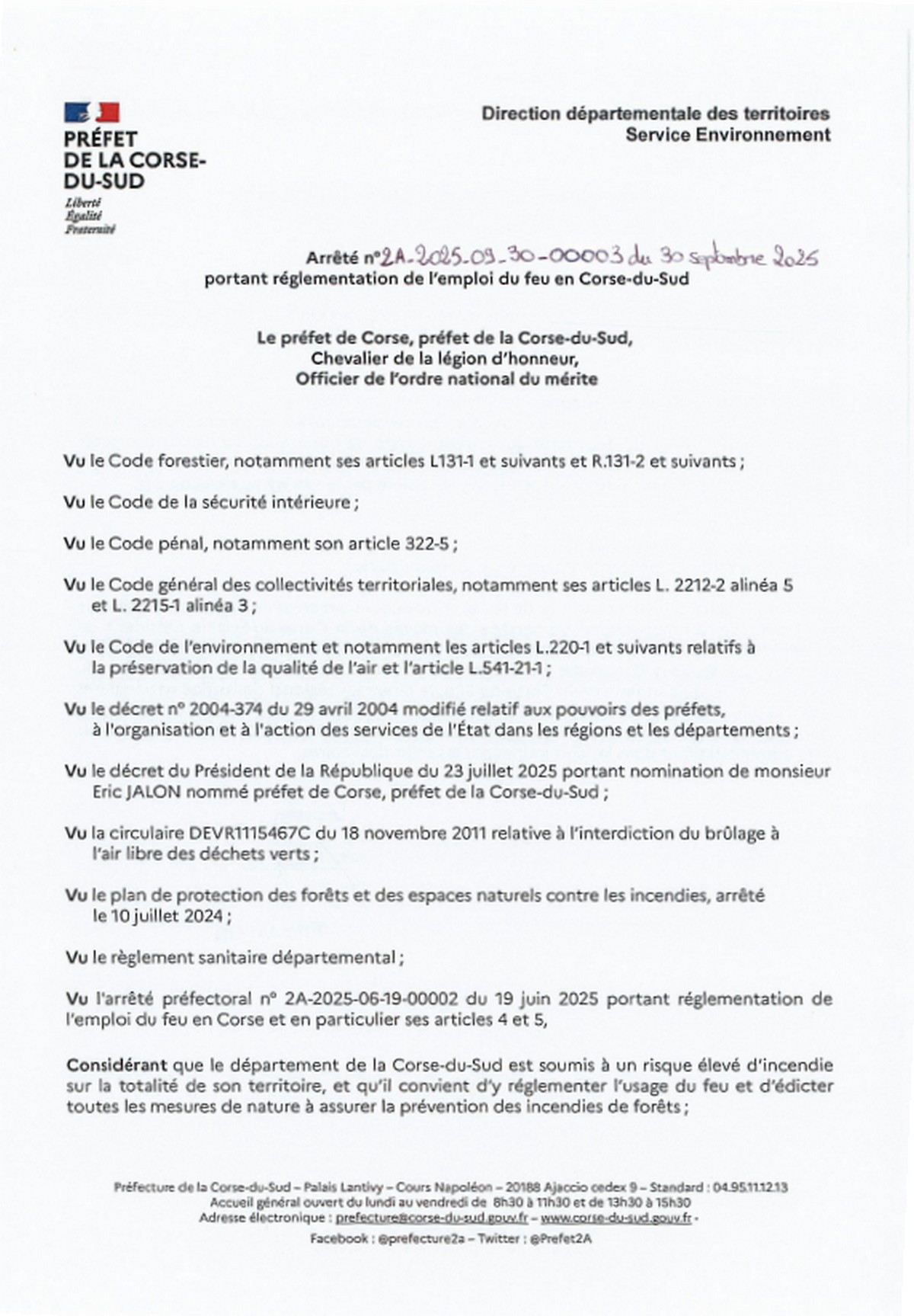 Vous êtes ici : Accueil > ARRÊTÉ N°2A-2025-09-30-00003 DU 30 SEPTEMBRE 2025.