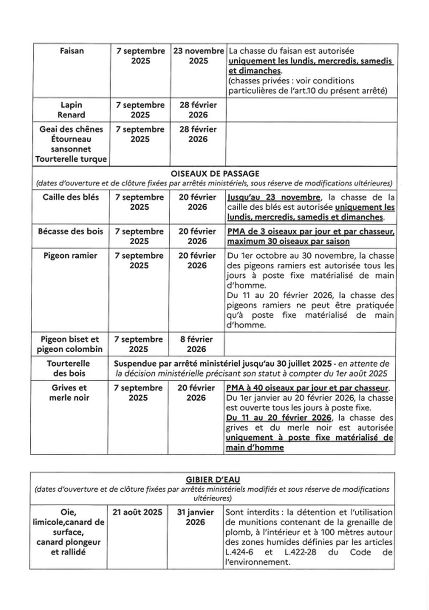 DE LA CHASSE POUR LA CAMPAGNE 2025-2026