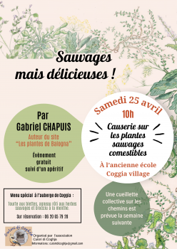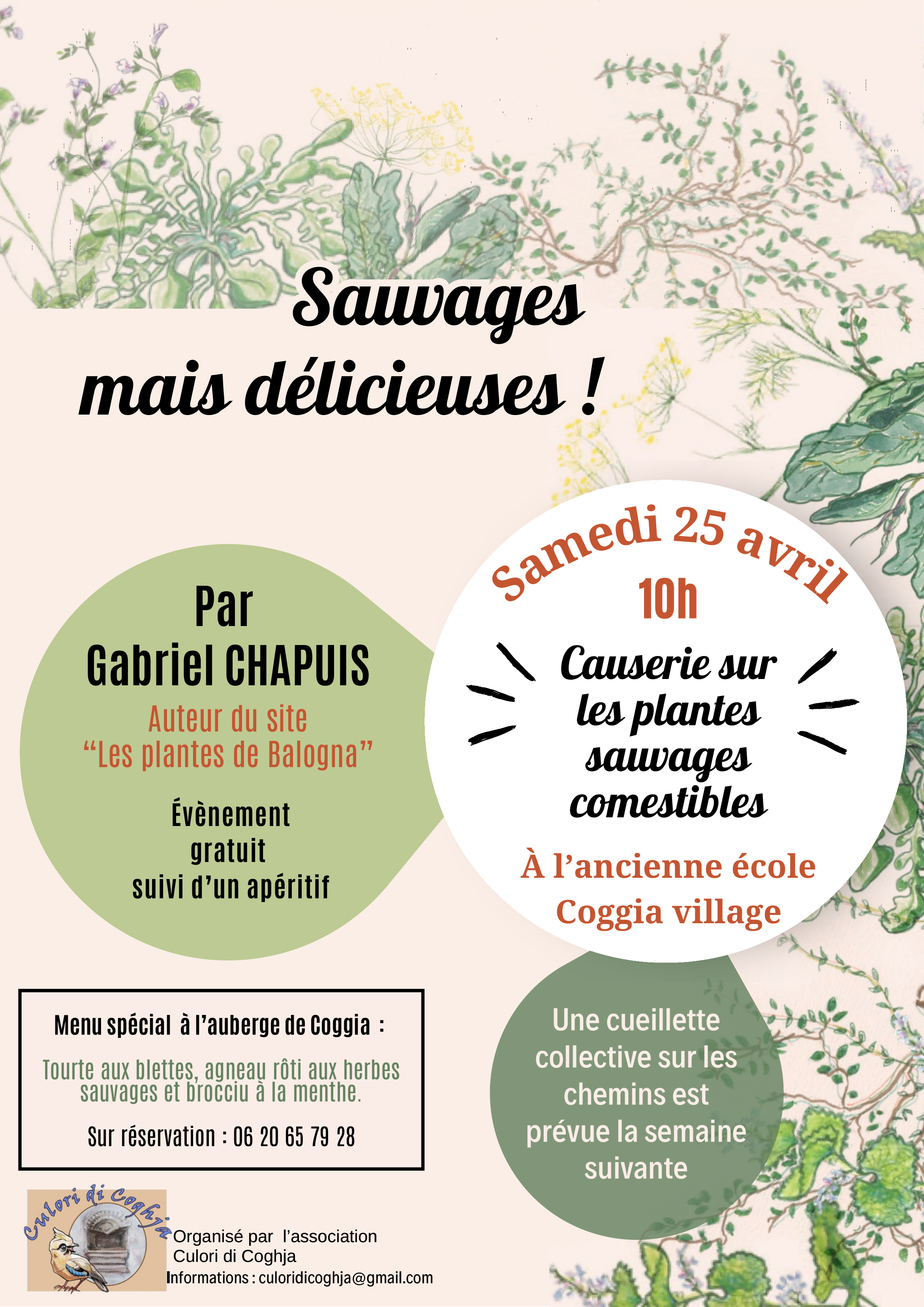 L'association Culori di Coghja organise une causerie sur les herbes sauvages de Corse le samedi 25 avril 2026 à 10 heures.
